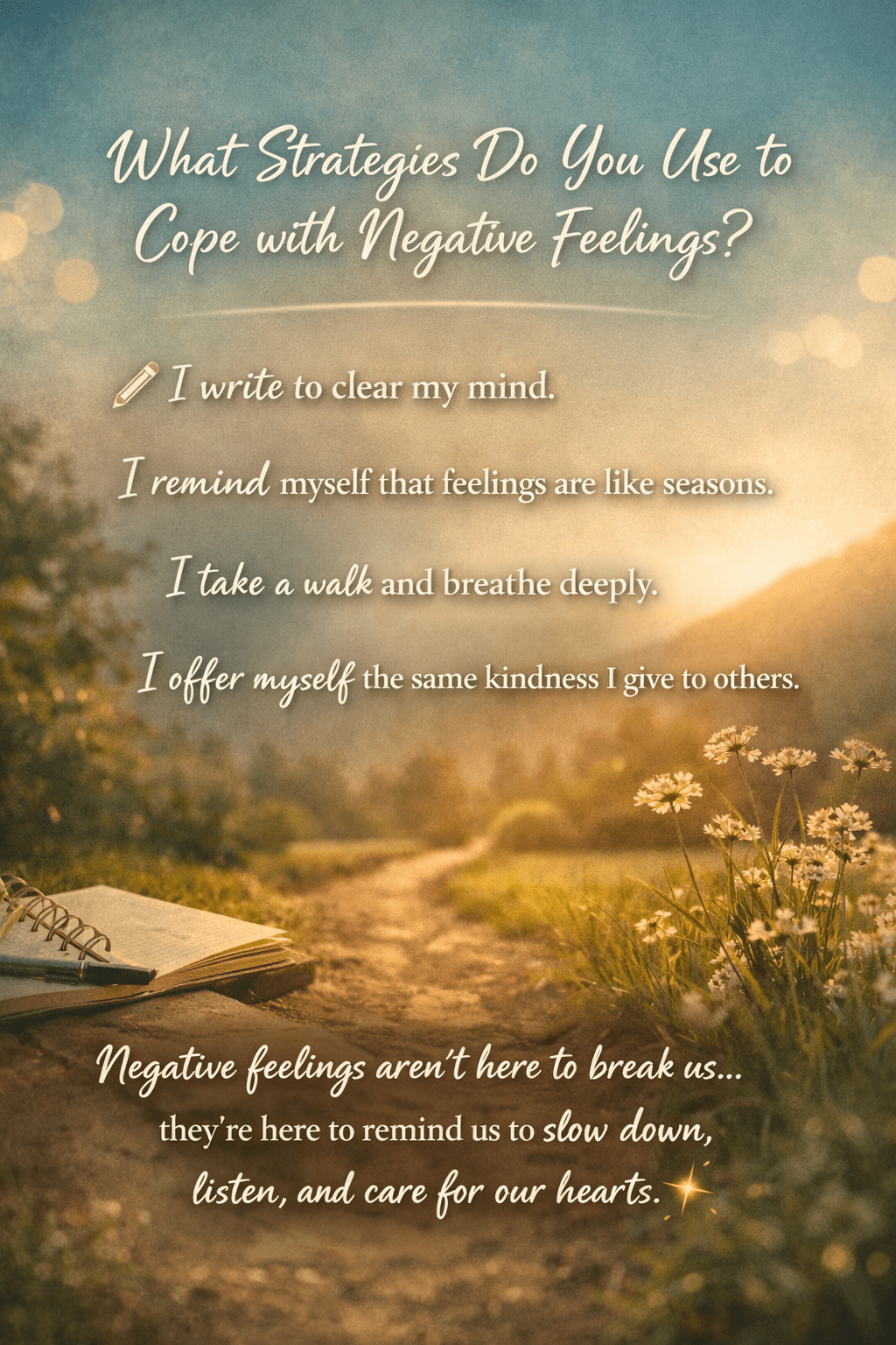 I also remind myself that feelings are like seasons—they pass. A walk, a quiet moment, or a deep breath can shift everything.